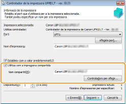 Introduïu el nom de la impressora compartida. [Controladors per afegir]