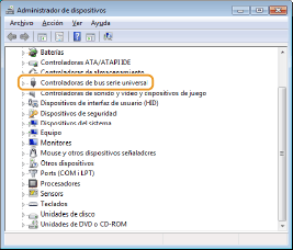 [Compatibilidad con impresoras USB] no apareix si el controlador de classe USB no està ben instal·lat. En aquest cas, tanqueu [Administrador de dispositius] abans de fer res més.