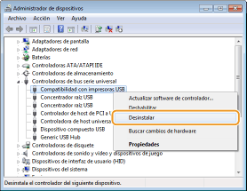 Feu clic amb el botó dret del ratolí a [Compatibilidad con impresoras USB] i feu clic a [Desinstalar].
