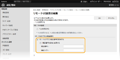 操作パネルで設定するときホーム画面の<メニュー>からリモートUIアクセス暗証番号の設定を行うこともできます。<リモートUI設定>
