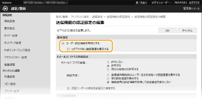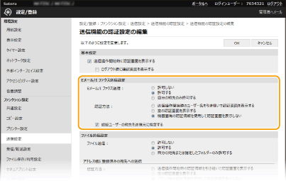 [送信機能の認証設定]の順に進む