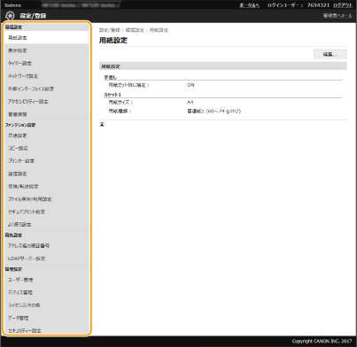 リモートUIを使って、パソコン側から本機のさまざまな設定を登録/変更できます。ほとんどの項目は本機の操作パネルで設定できますが、リモートUIでしか設定できない項目もあります。ここでは、リモートUIを使って本機の設定を変更する基本的な流れを説明します。