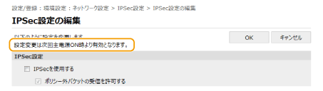 本機の再起動が必要かどうかは、編集画面内のメッセージを参考にしてください。