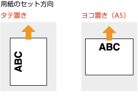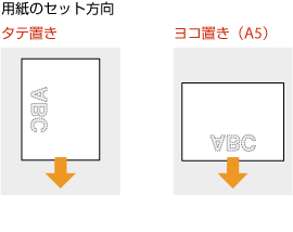 ロゴマークなどが印刷されている用紙を使うときは、用紙の向きに注意する必要があります。ロゴマークなどがある面に正しい向きで文書を印刷するために、レイアウトや印刷のしかたに応じて用紙をセットしてください。