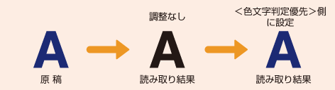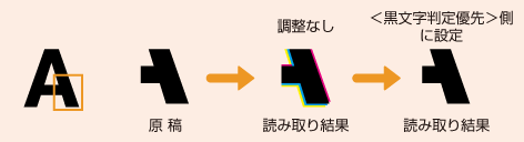 原稿をカラーで読み込むとき、黒または黒に近い色の文字が原稿により近くなるように調整できます。