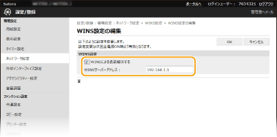 操作パネルで設定するときホーム画面の<メニュー>からWINS設定を行うこともできます。<WINS設定>