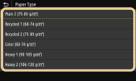 If the screen shown above is not displayed when paper is loadedIf you always load the same paper in the multi-purpose tray, you can skip the paper setting operations by registering the paper size and type as the default setting. When the default setting is registered, however, the screen shown above is not displayed. To display the screen, select <Specify When Loading Paper> (Registering Default Paper Settings for the Multi-Purpose Tray).
