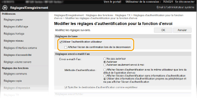 [Réglages d'authentification pour la fonction d'envoi].