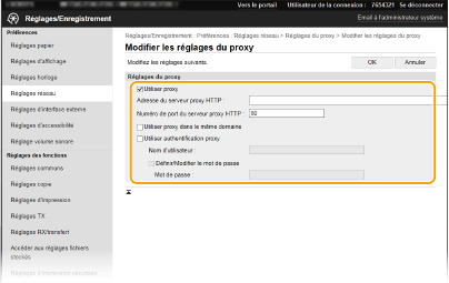 Cochez la case [Utiliser proxy] et définissez les réglages requis.