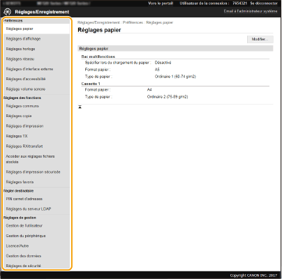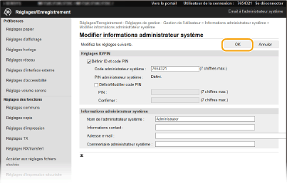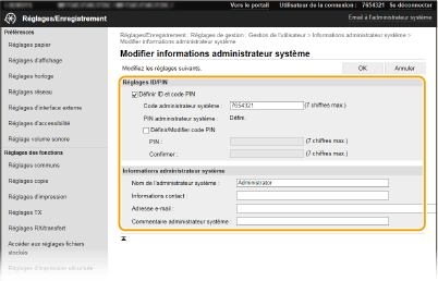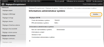 Vous ne pouvez modifier certains réglages que si vous êtes connecté en tant qu'administrateur système.