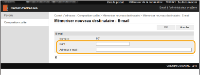 Pour enregistrer le destinataire de l'e-mail ou de l'I-Fax