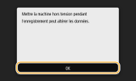 L'enregistrement démarre. Patientez jusqu'à ce que le message <L'installation est terminée. Les modifications seront prises en compte lorsque la machine sera mise hors puis sous tension.> s'affiche.