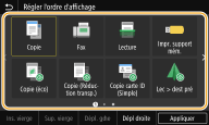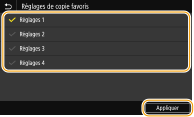 Cochez les cases de tous les réglages à afficher dans l'écran Accueil, puis sélectionnez <Appliquer>.
