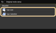 Sélectionnez <Type Livre> ou <Type Calendrier>