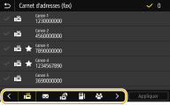 Le carnet d'adresses permet d'indiquer un destinataire en le sélectionnant dans la liste des destinataires enregistrés ou en recherchant son nom parmi les destinataires dont le nom est défini.