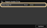 Si vous sélectionnez <Activé>, il est possible d'inclure une partie du document envoyé dans le rapport résultat TX.