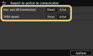 Sélectionnez <Activé> pour toujours imprimer le rapport au bout de 40 transmissions ou <Désact.> si vous ne voulez pas imprimer automatiquement le rapport.