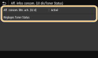 <Afficher infos consom. (UI dis./Toner Status)>