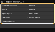 ![]() Pour faire d'autres réglages d'impression, sélectionnez <Fermer>.