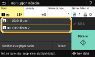 ![]() <Impression recto-verso> n'est pas compatible avec certains types et formats de papier. Papier disponible