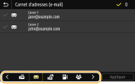 Si vous sélectionnez un destinataire à partir du <Carnet d'adresses> dans l'écran Accueil, l'écran Procédures de base pour l'envoi d'e-mail ou l'envoi de fichier peut s'afficher alors que le destinataire reste spécifié.