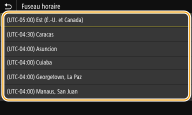 Sélectionnez le <Fuseau horaire> avant de régler la date et l'heure actuelles. Si plus tard vous changez le <Fuseau horaire>, la date et l'heure sont également modifiées en conséquence.