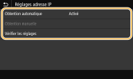 Vérifiez si <IP auto> est réglé sur <Activé>.