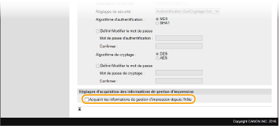 Définissez les réglages d'acquisition des informations de gestion d'imprimante.