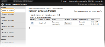 [Estado de trabajos] en [Imprimir]