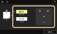 Seleccione <X> o <Y>, e introduzca la longitud de cada lado usando <+>/<->, con