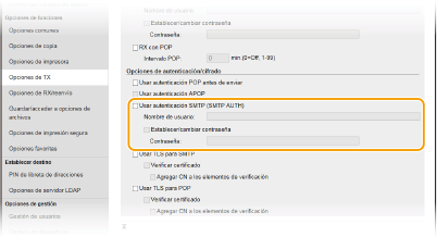 Si configura la Autenticación SMTP (SMTP AUTH), la identificación del usuario con el nombre de usuario y la contraseña se realiza en el momento de enviar el e-mail o I-Fax.