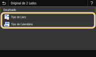 Selecione <Tipo de Livro> ou <Tipo de Calendário>