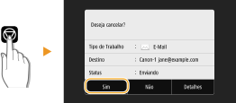 Se você deseja cancelar o envio de documentos imediatamente após selecionando Iniciar, selecione <Cancelar> no visor ou pressione . Você também pode cancelar o envio de documentos após verificar o status do envio.