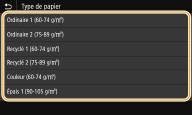 Une fois les paramètres papier par défaut enregistrés, l'écran de définition du papier ne s'affiche plus lorsque vous insérez du papier, et les mêmes paramètres sont appliqués systématiquement. Si vous chargez un papier de format ou de type différents sans modifier les paramètres papier, l'appareil risque de ne pas imprimer correctement. Pour éviter ce problème, sélectionnez <Spécifier lors du chargement du papier> à l'étape 3, puis chargez le papier.