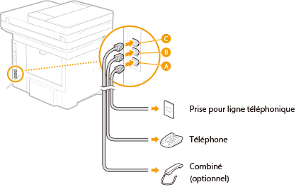 Connectez le câble téléphonique inclus à la prise pour ligne téléphonique située sur l'appareil (