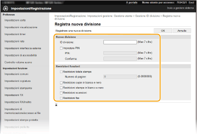 Registrare un ID reparto e impostare un PIN corrispondente. Registrare tutti gli ID reparto da gestire.