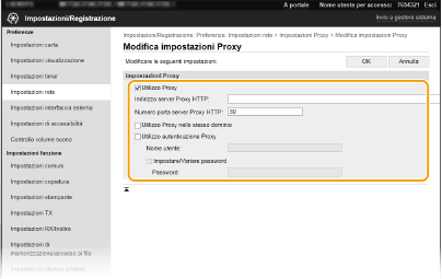 Selezionare la casella di controllo [Utilizzo Proxy] e specificare le impostazioni richieste.