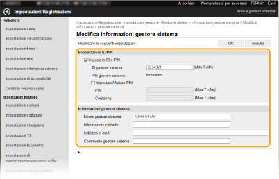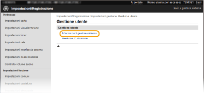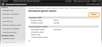 Alcune impostazioni possono essere modificate solo dopo aver effettuato l'accesso in modo Gestore sistema.