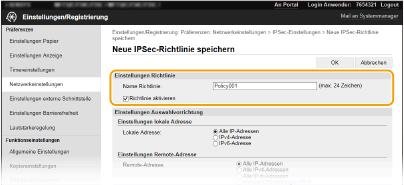 Aktivieren Sie das Kontrollkästchen [Richtlinie aktivieren].