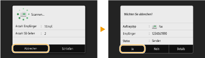 auf dem Bedienfeld. Sie können das Senden von Faxen auch nach der Überprüfung des Faxstatus abbrechen.