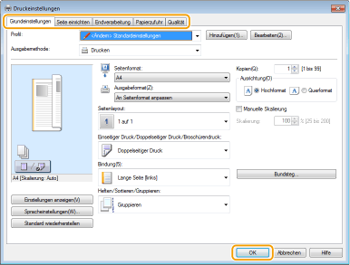 Legen Sie gegebenenfalls die Druckeinstellungen fest, und klicken Sie auf [OK].