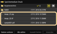 Wenn die Dateitypen gemischt sind, wählen Sie <JPEG/TIFF-Dateien> oder <PDF-Dateien>.