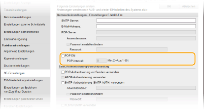 Wenn Sie bei Verwendung eines POP3-Servers das Passwort festlegen oder ändern möchten, aktivieren Sie dieses Kontrollkästchen, und geben Sie alphanumerische Zeichen in [Passwort] ein.