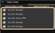 Seleccione el documento cuyo registro desea comprobar en la pestaña <Registro de trabajos TX> o <Registro de trabajos recibidos>.