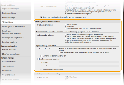 Wanneer [Alleen toestaan naar mezelf of opgegeven map] is opgegeven in [Bestandsverzending]