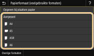 Als u standaard-papierinstellingen hebt opgegeven, wordt het scherm met papierinstellingen niet meer weergegeven wanneer u papier laadt. U gebruikt dan altijd dezelfde instellingen. Als u papier van een ander formaat of type plaatst zonder de papierinstellingen aan te passen, wordt er mogelijk niet goed afgedrukt. U kunt dit probleem voorkomen door <Opgeven bij plaatsen papier> in stap 3 te selecteren en dan pas het papier te laden.