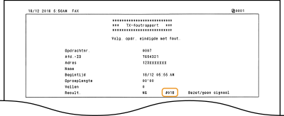 Als er een storing optreedt, bijvoorbeeld als het afdrukken mislukt, of u een fax of gescand origineel niet kunt verzenden of ontvangen, wordt een corresponderende storingscode van drie cijfers weergegeven in een rapport of in het scherm met het takenlogboek. Raadpleeg