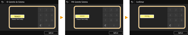 Iniciar sessão na máquinaSe tentar aceder a itens que necessitem de privilégios de administrador (por exemplo, <Rede> e <Configurações de Gerenciamento>) quando a ID do administrador de sistema estiver especificada, aparece o ecrã de início de sessão. Iniciar sessão na máquina