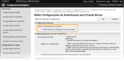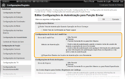 Quando [Permitir Somente Envio para Mim Mesmo ou para Pasta Especificada] está especificado em [Envio de Arquivo]