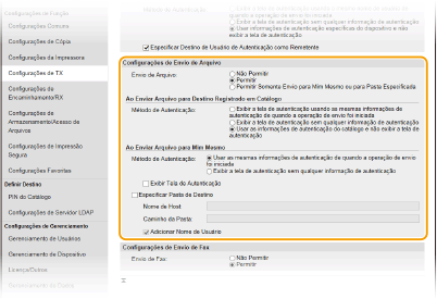 Quando [Permitir] está especificado em [Envio de Arquivo]